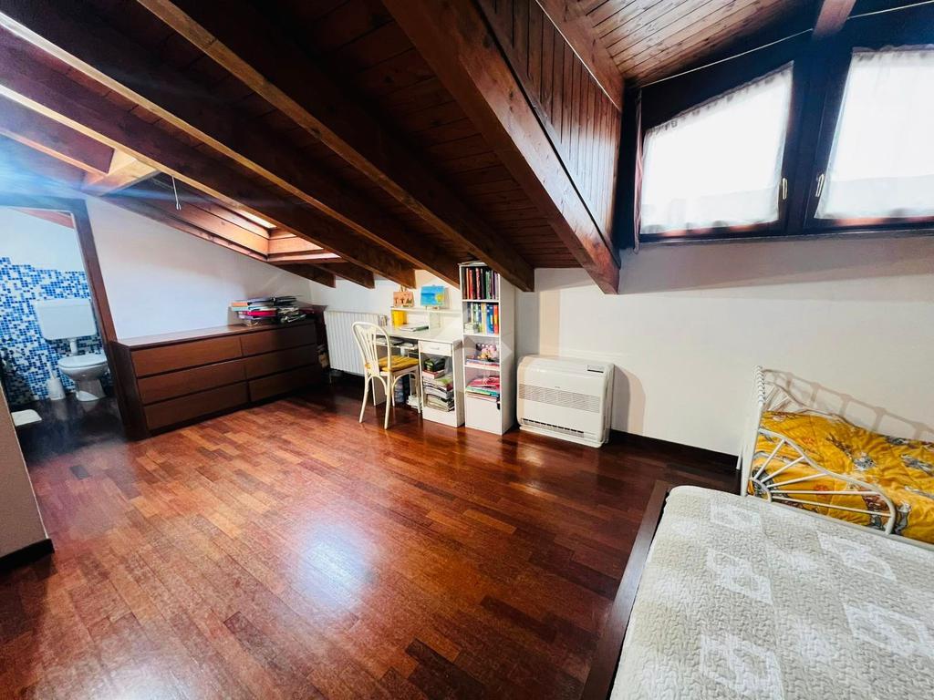 Proponiamo in vendita un grazioso appartamento di due locali disposto su due livelli, situato al primo piano di una palazzina servita da ascensore, in una tranquilla e apprezzata zona residenziale di si distingue per la distribuzione funzionale degli spazi e per l’atmosfera accogliente, ideale per chi desidera una soluzione abitativa pratica e confortevole, perfetta anche per giovani coppie o come primo acquisto. L’ingresso conduce direttamente alla zona giorno, composta da un luminoso soggiorno con angolo cottura, un ambiente ben organizzato e piacevolmente vivibile, reso ancora più gradevole dall’uscita sul balcone, ideale per concedersi momenti di relax all’aria aperta. Un comodo disimpegno accompagna alla zona di servizio del piano, dove troviamo il primo bagno. Salendo al piano superiore si sviluppa la zona notte, caratterizzata da una spaziosa camera da letto che garantisce privacy e tranquillità, oltre alla presenza di un secondo bagno che rende l’abitazione particolarmente funzionale e confortevole nella vita quotidiana. L’appartamento, attualmente abitato, è stato ristrutturato nel 2015 e si presenta in buone condizioni generali. Le finiture comprendono infissi in legno con doppi vetri, pavimentazione in ceramica e porta d’ingresso blindata, elementi che contribuiscono a garantire comfort, sicurezza e un buon isolamento. Completano la proprietà una comoda cantina e un box auto al piano seminterrato, spazi accessori molto utili sia per il deposito sia per il parcheggio dell’auto. La soluzione rappresenta un’ottima opportunità per chi cerca un appartamento accogliente, ben distribuito e situato in un contesto residenziale tranquillo, ma allo stesso tempo comodo ai principali servizi del paese.
