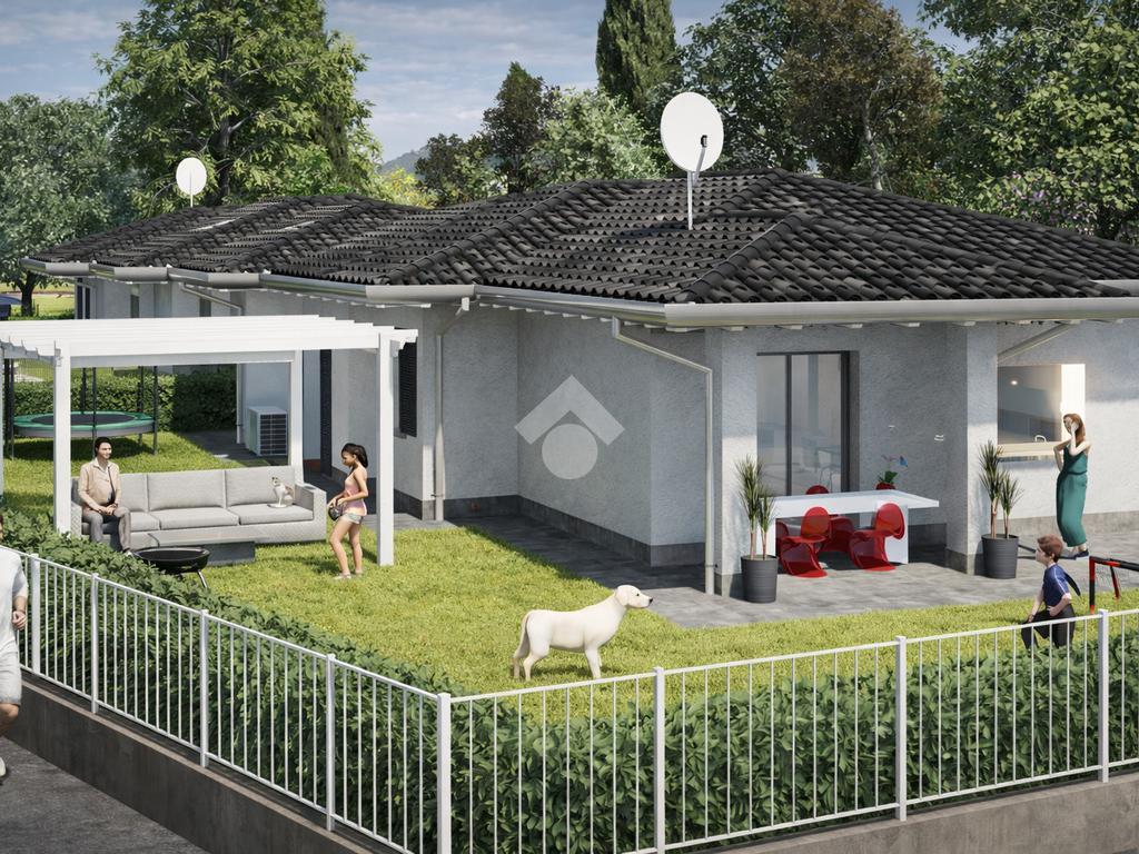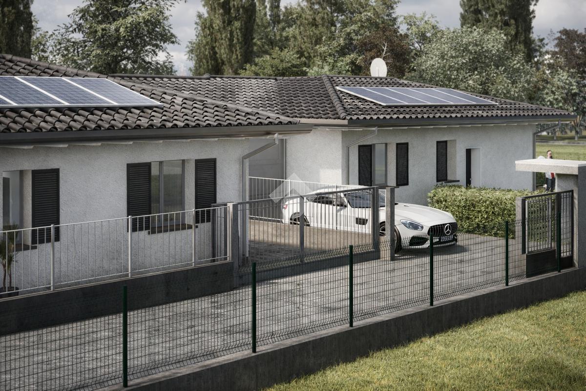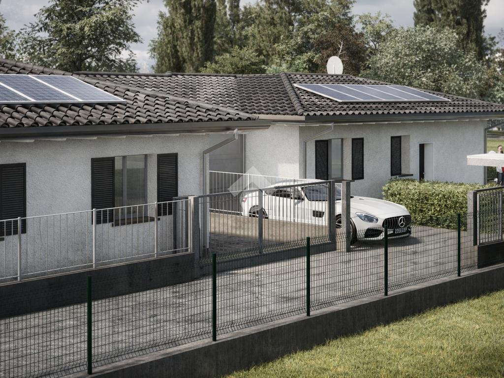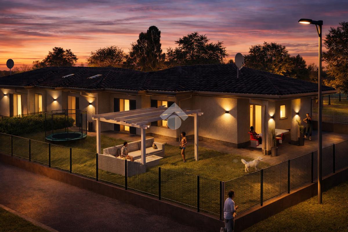 A Caravaggio, in elegante contesto residenziale di nuova realizzazione, proponiamo villa indipendente dal design contemporaneo, pensata per offrire comfort, efficienza e qualità abitativa ai massimi livelli. La casa si sviluppa su unico piano, con ambienti ben distribuiti e una luminosa zona living open space che si affaccia sul portico coperto e sul giardino privato: uno spazio ideale per vivere momenti di relax all’aria aperta in totale privacy. La zona notte comprende tre camere e doppi servizi, soluzione perfetta per famiglie che desiderano funzionalità e comodità quotidiana. Il capitolato prevede finiture moderne e curate nei dettagli, con ampia possibilità di personalizzazione degli interni. Grande attenzione è dedicata al risparmio energetico grazie a impianti di ultima generazione, riscaldamento a pavimento, serramenti ad alte prestazioni e predisposizioni tecnologiche che garantiscono efficienza e comfort in ogni stagione. Completano la proprietà box auto, posti auto privati e un ampio giardino che circonda l’abitazione, valorizzando l’indipendenza e la qualità della vita. Una soluzione ideale per chi cerca una casa nuova, elegante e pronta a soddisfare le esigenze abitative moderne, in posizione strategica tra Bergamo e Milano.
